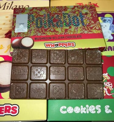 Polkadot chocolate bars blend rich flavor with precisely measured mushroom-infused ingredients, offering a smooth, convenient, and discreet format for those exploring controlled, low-dose wellness products made from legally sourced functional mushrooms.